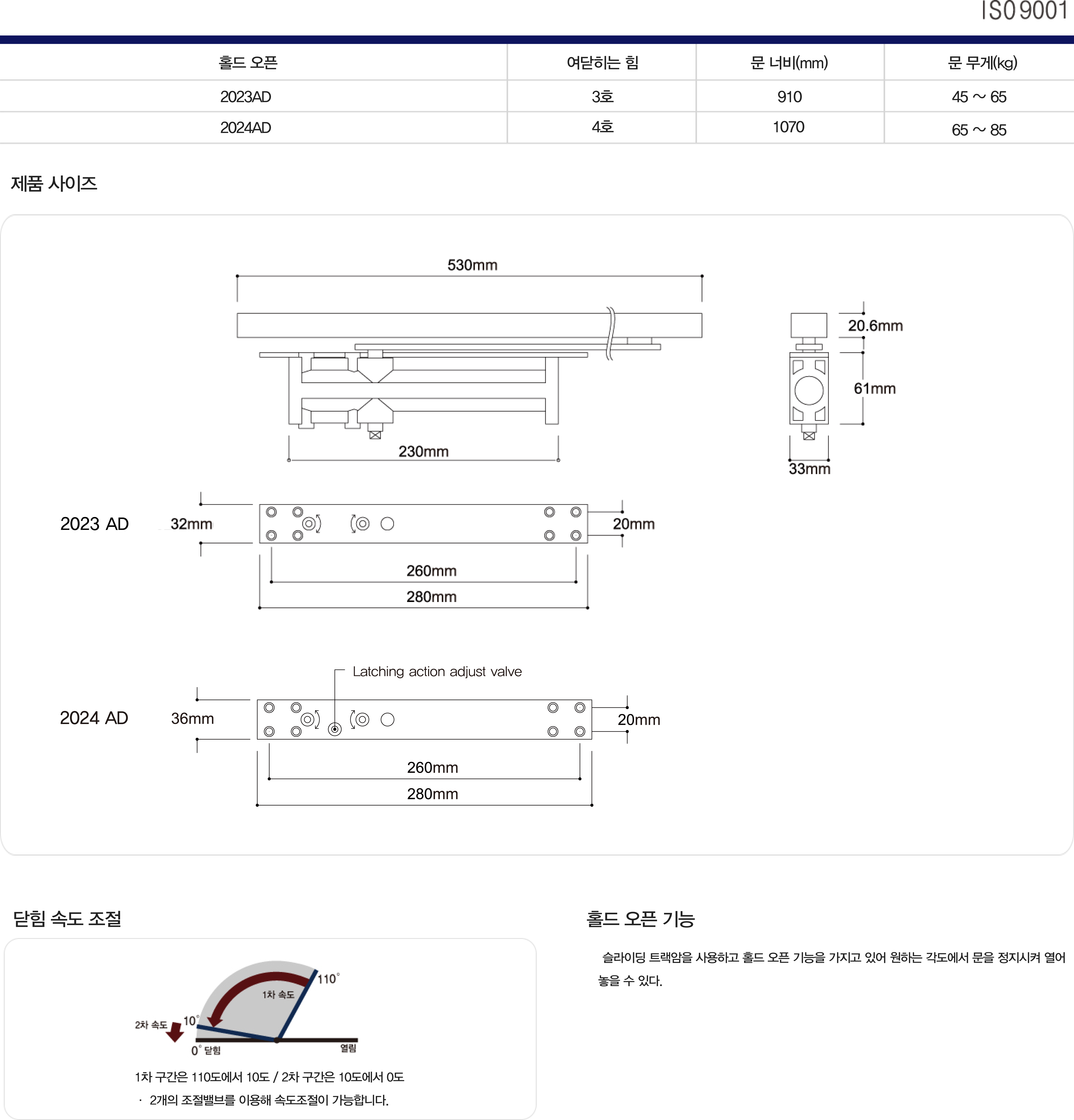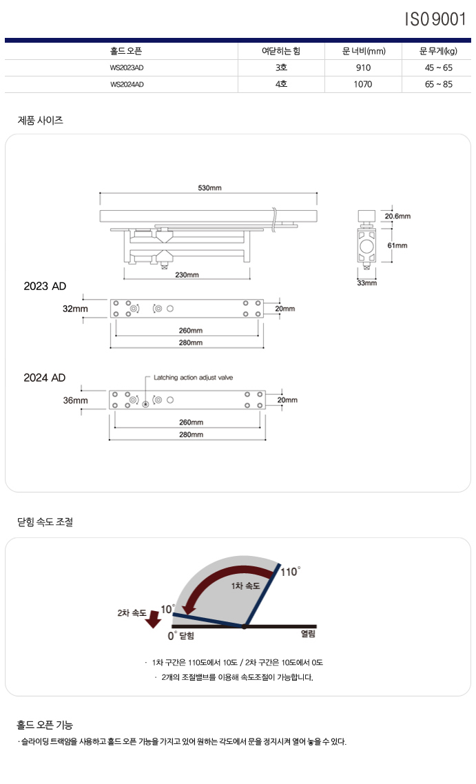 홀드오픈기능: 원하는 위치에 문을 정지 시켜 놓을 수 있음