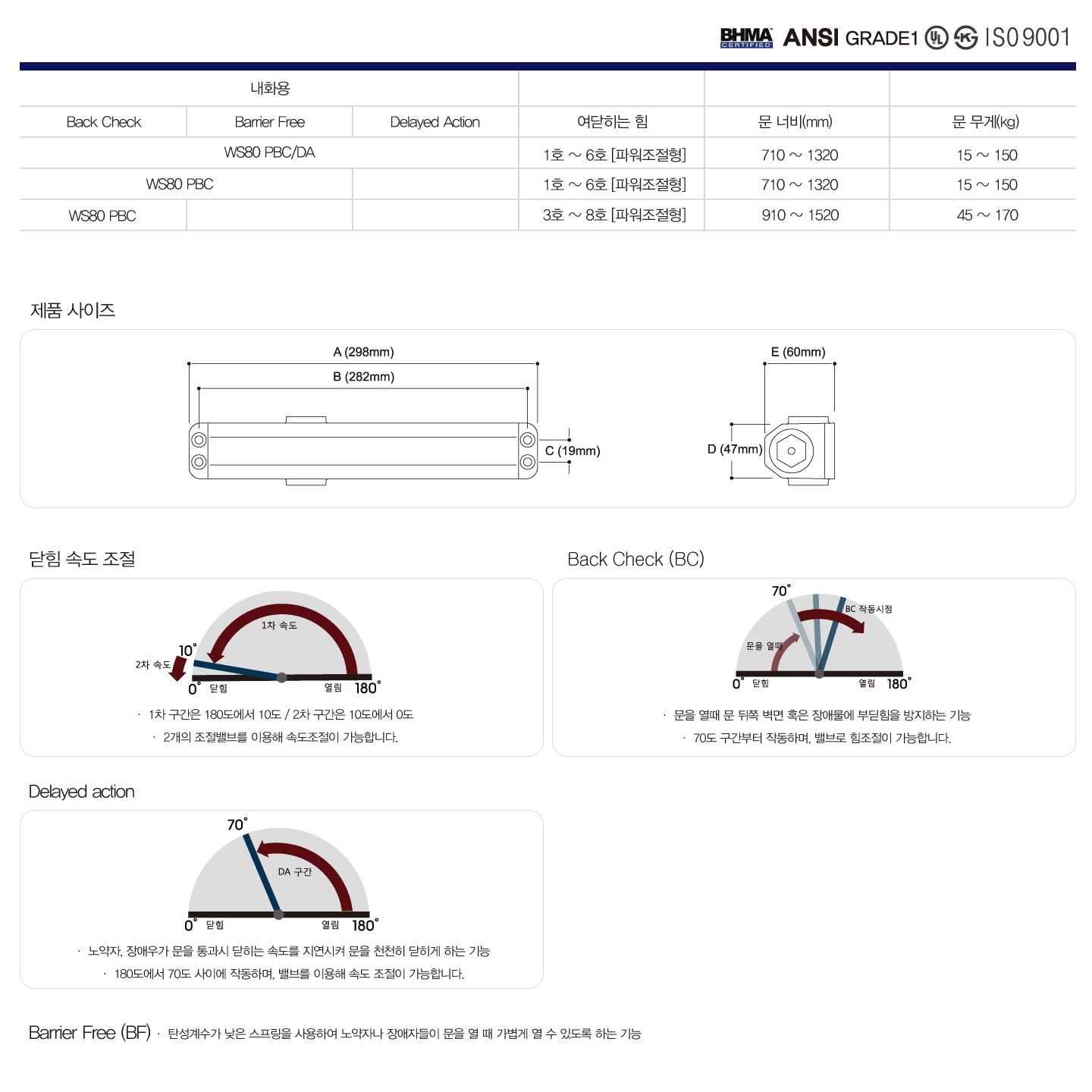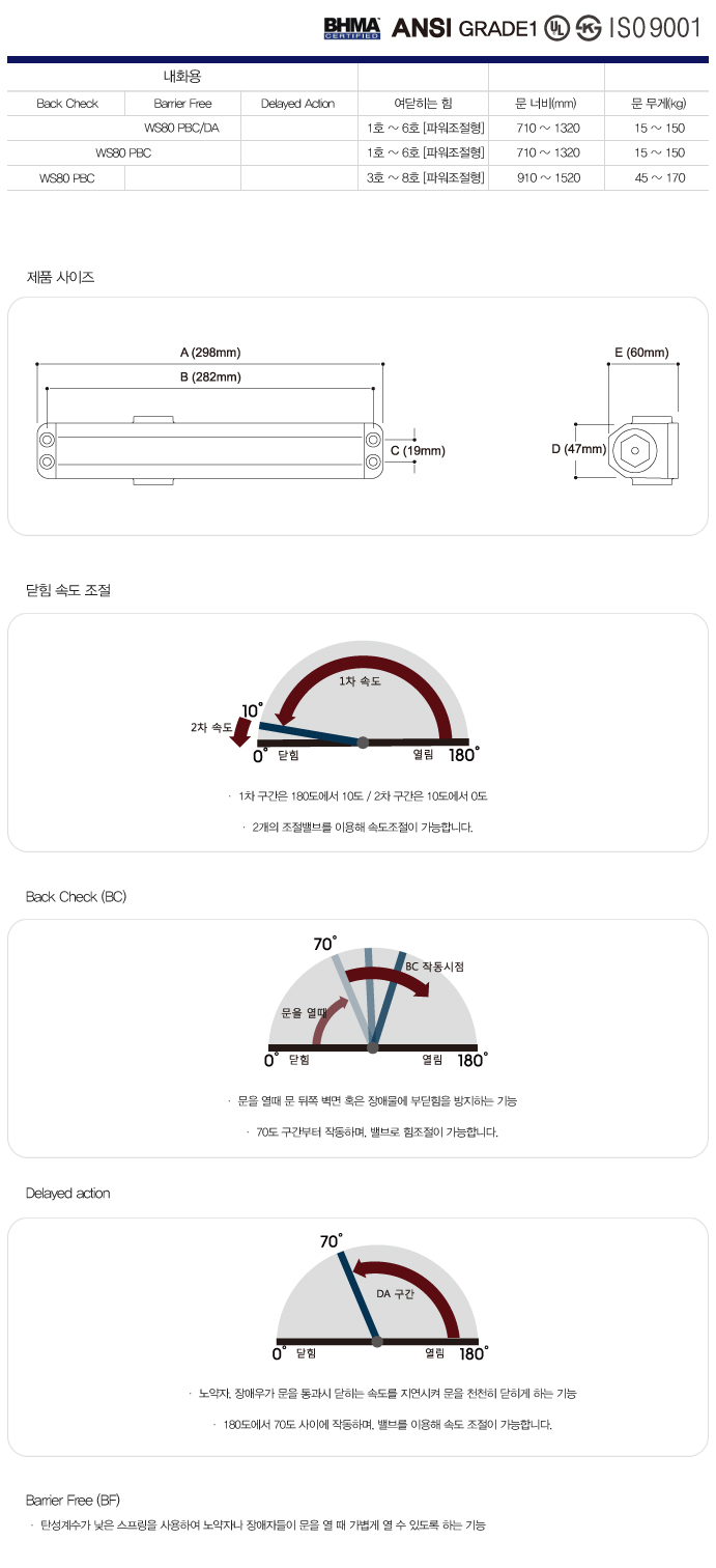 문너비,문무게에 따른 열리는 힘,닫히는 힘 조절가능 (최대문너비 mm, 최대문무게 Kg)