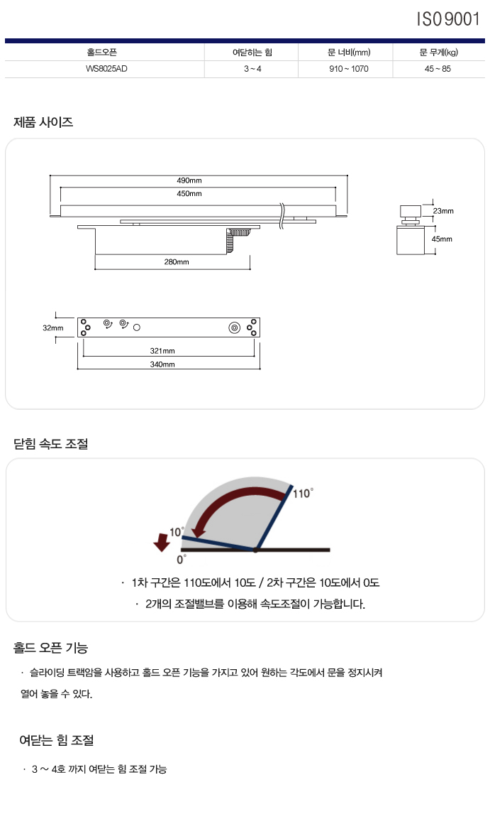홀드 오픈 기능 : 원하는 위치에 문을 정지 시켜 놓을 수 있음